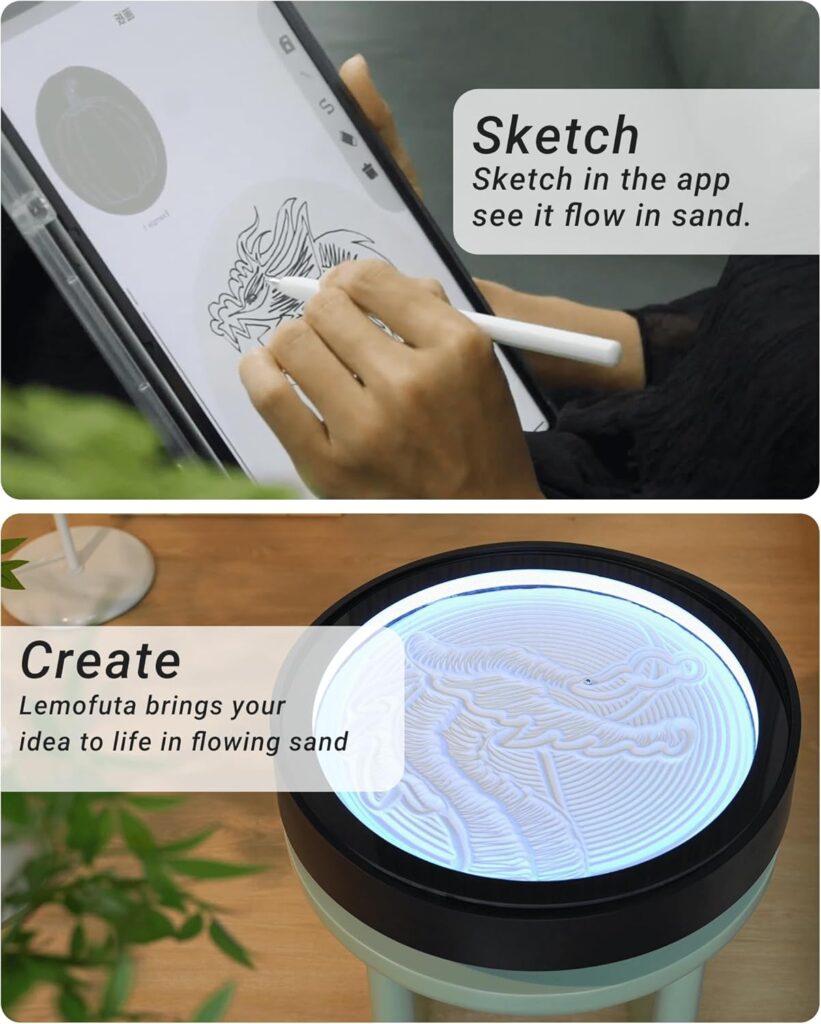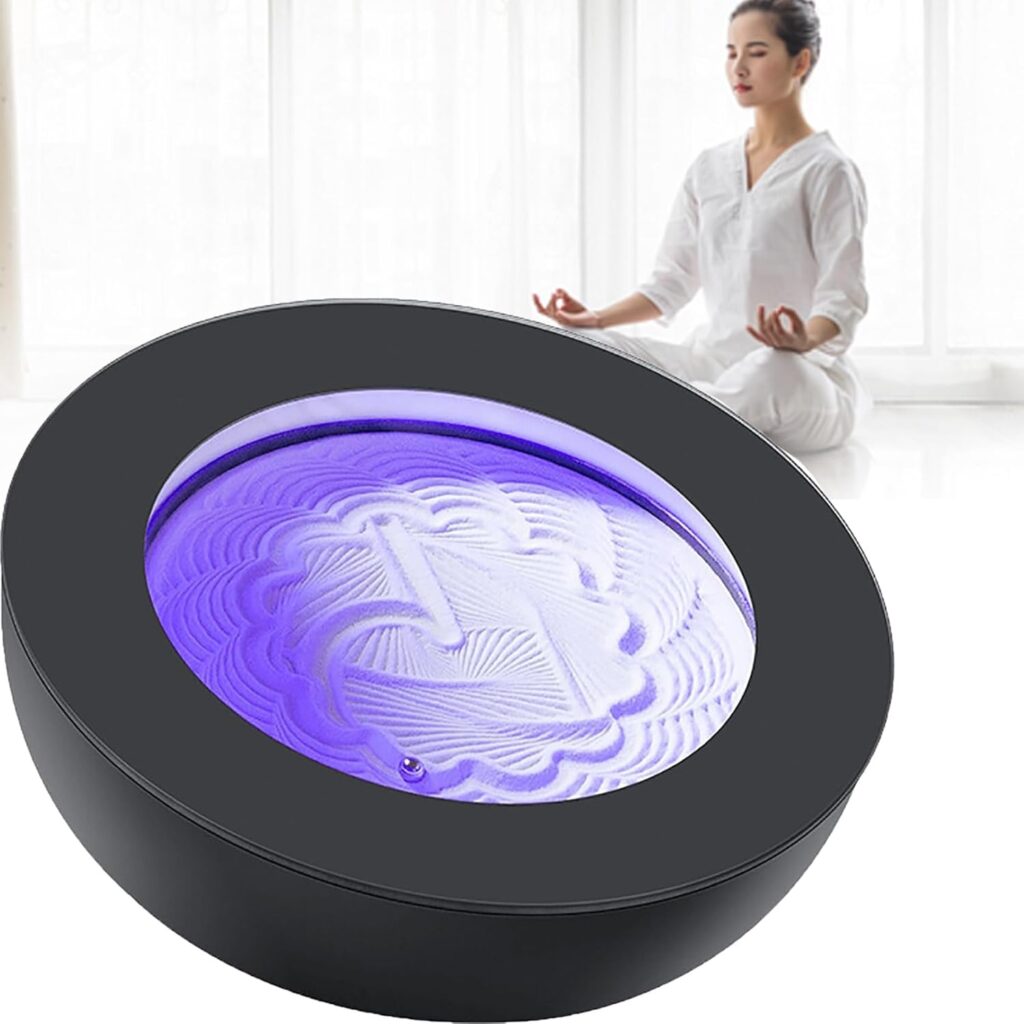 A meditation sand table gently draws continuous, flowing patterns that signal your nervous system to slow down.